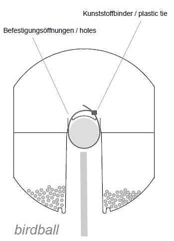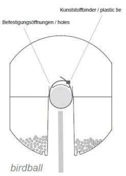 Un serre-câble en plastique est inclus pour plus de sécurité: il suffit de le passer autour de la rambarde puis dans les fentes à l’intérieur de la mangeoire prévues à cet effet (voir schéma dans galerie photo). La mangeoire est équipée au fond de 2 bouchons amovibles pour évacuer l’eau. Ballcony Blirdball est réalisé en polyéthylène recyclable résistant au gel et à la chaleur, il peut donc rester toute l’année dehors. Déclinée en 3 coloris chics (gris anthracite, lime et orange), cette petite mangeoire de balcon est idéale pour décorer son petit espace extérieur citadin tout en nourrissant les oiseaux.