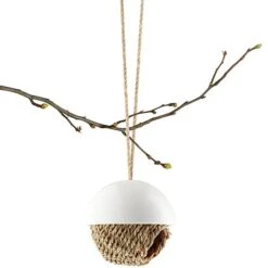 Le Nichoir Bird Shelter de chez Eva Solo est un joli refuge idĂ©al pour aider les oiseaux de votre jardin Ă se protĂ©ger pendant les intempĂ©ries. Ce nichoir rĂ©alisĂ© en porcelaine blanche et en paille tressĂ©e est non seulement ultra dĂ©co, mais aussi très pratique. Il peut se laisser toute l’annĂ©e dehors. Sa partie en porcelaine se nettoie au lave-vaisselle. Cet abri pour petits oiseaux se monte et se dĂ©monte facilement, il se suspend grâce au cordon de suspension inclus. Le dĂ´me en porcelaine offre un abri contre le froid et la pluie, tandis que la partie tissĂ©e invite les oiseaux Ă faire leur nid au dĂ©but du printemps.Â
