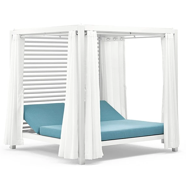La Pergola Bivacco de chez Varaschin est une création du centre de recherche de la marque italienne. Elle s’identifie par son côté chic et ses lignes épurées. Cette pergola design est dotée d’une structure en aluminium blanc verni, de rideaux latéraux, d’un toit et d’un matelas très confortable. De quoi s’évader et profiter de délicieux moments de détente en extérieur. Ses rideaux latéraux permettent de créer un cocon intimiste une fois tirés. Son matelas se compose de 2 dossiers inclinables pour offrir un maximum de confort. La Pergola Bivacco apportera une touche de modernité à un espace extérieur, sur une terrasse, au bord d’une piscine ou dans un jardin.
