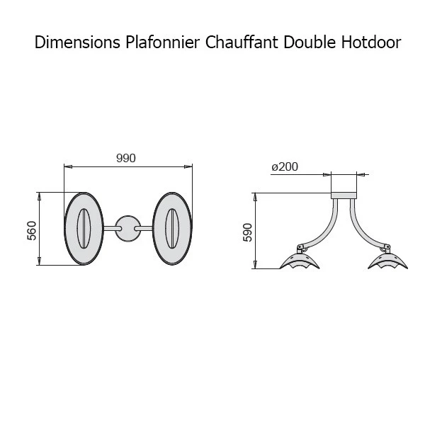 Décliné en 2 types de puissances d’infrarouge: 1500W et 2000W, ce plafonnier chauffant peut être utilisé à l’intérieur comme à l’extérieur.