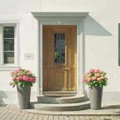Dans un hall d’entrée ou sur une terrasse, ce type de pot à la taille élancée est idéal pour les roses ou les plantes avec de longues racines.