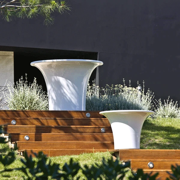 Le Pot Cone Vase dessiné par Naoto Fukasawa pour Serralunga se démarque par ses courbes voluptueuse, et sa forme rappelant le pavillon d’un saxophone. Il aménagera avec élégance votre extérieur comme votre intérieur, et vos plantes vous dirons merci. Son design unique lui confère une notoriété avant-gardiste, et ses multitudes de coloris apportent à ce pot / cache-pot un aspect fun et joyeux.