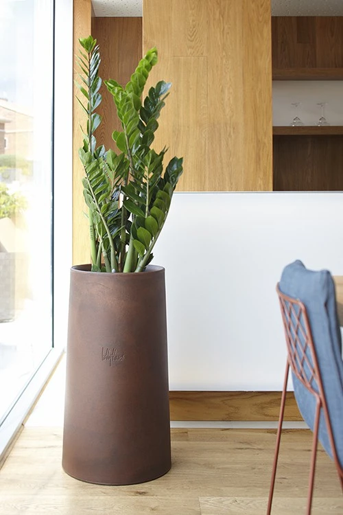 Le Pot Haut Novo de chez Hobby Flower a été conçu par le designer Jordi Vilardell. Ce pot simple mais contemporain qui revisite le pot traditionnel s’adaptera à tout espace. Ces courbes élégantes sublimeront vos plantes avec modernité. Ce pot ou plutôt cette hydrojardinière… Novo est en fait muni d’un double tuyau grâce auquel la circulation d’air est permanente et facilite l’oxygénation de l’eau de façon à ce que les racines reproduisent le fonctionnement de la nature : cela signifie que le sol ne sèche pas et ne se comptacte pas. Vous pourrez ainsi remplir le réservoir 4 fois par an et arroser superficiellement vos plantes chaque 4 ou 5 semaines. Réalisé en acier inoxydable, Novo s’adaptera à vos extérieurs puisqu’il est résistant aux intempéries, UV et températures extrêmes. Novo existe également en version basse avec le Pot Bas Novo.