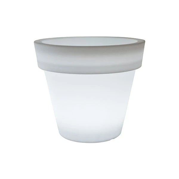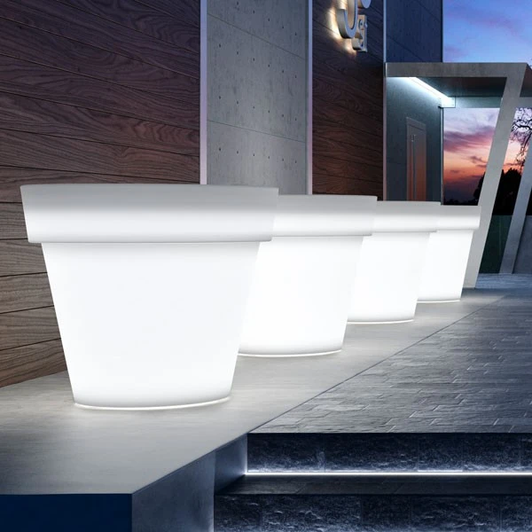 Le Pot Ikon Lumineux Neutre de chez Euro3Plast est un pot inspiré du pot horticole traditionnel et revisité avec une grande modernité et élégance. Réalisé en ultra-résines (PE) non toxiques et recyclables, ce pot lumineux est ultra résistant aux intempéries, aux chocs et aux UV. Il s’installe donc parfaitement en extérieur, que ce soit sur une place publique que dans un jardin privé. Décliné en 9 dimensions, ce pot lumineux est un véritable objet décoratif, compte tenu de son faible volume intérieur, il ne convient pas aux plantations mais décore à la perfection un espace extérieur.