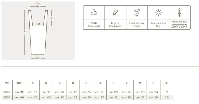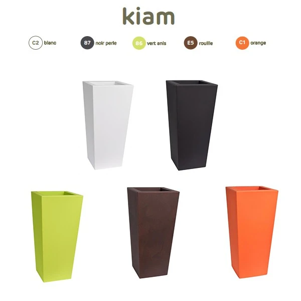 Le Pot Kiam d’Euro3Plast est destiné à ceux qui souhaitent décorer leur extérieur avec une élégance et un design hors du commun. Caractérisé par ses 5 couleurs fraiches et originales, ce pot sublimera votre décoration en apportant une touche de gaieté dans tout espace qu’il soit privé ou public. Réalisé en ultra-résines (PE) non toxiques et recyclables, Ikon résiste aux intempéries (-65° +85°), aux chocs, à la casse et aux UV. Disponible en 2 dimensions et décliné en 5 couleurs, Kiam s’adapte à tout espace qu’il soit restreint ou vaste et à tous les goûts.