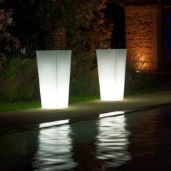 Le Pot Kiam Lumineux Neutre de chez Euro3Plast est un pot de grande élégance. Réalisé en ultra-résines (PE) non toxiques et recyclables, ce pot lumineux est ultra résistant aux intempéries, aux chocs et aux UV. Il s’installe donc parfaitement en extérieur, que ce soit sur une place publique que dans un jardin privé. Décliné en 2 dimensions aux hauteurs généreuses, ce pot accueillera vos végétaux et les sublimera de jour comme de nuit. Fonctionnel de jour et scénographique de nuit, Kiam en version lumineuse saura aménager un espace en créant une athmosphère exclusive grâce à sa lumière diffuse.