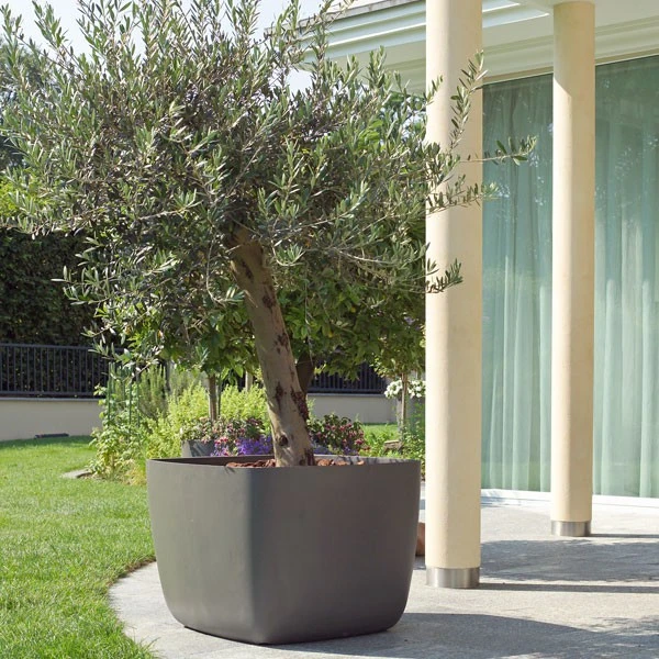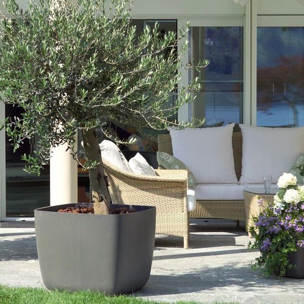 Le Pot Osaka de chez Eternit étonne par ses formes douces et par la sobriété de sa matière.