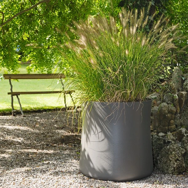 En fibres-ciment, ce pot est résistant à toute nuisance extérieure, y compris aux températures extrêmes et au gel!