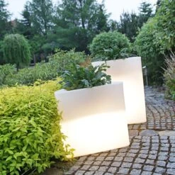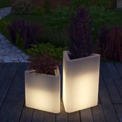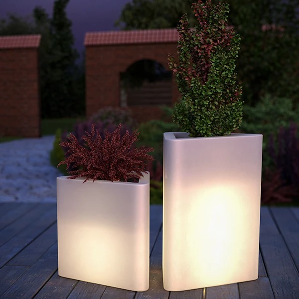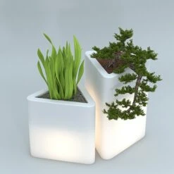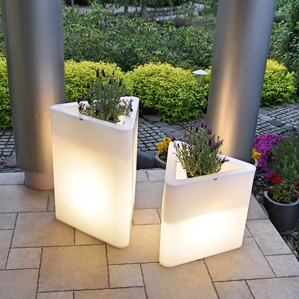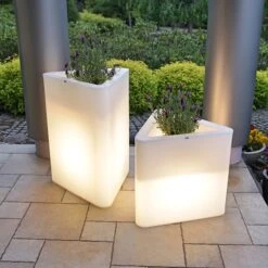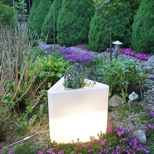 Le Pot Triton H48cm Lumineux de chez Pdconcept est un pot lumineux design et moderne. Avec sa forme triangulaire, il s’associe idéalement avec le Pot Triton H68cm Lumineux (vendu séparément en article complémentaire) afin de créer des compositions contemporaines. Réalisé en polyéthylène résistant aux intempéries, aux UV et aux températures extrêmes, ce pot lumineux design est équipé d’un câble électrique noir d’une longueur de 3 mètres (sans interrupteur) conçu pour un usage extérieur (norme IP44). Il se branche tout simplement sur secteur pour vous offrir une lumière diffuse et agréable. Une fois allumé, Triton créé une scénographie hors du commun dans un espace extérieur, de quoi décorer avec brio votre jardin, terrasse ou balcon. Triton existe également en version non lumineuse à simple paroi (adapté aux plus grands végétaux) avec le Pot Triton H48cm.