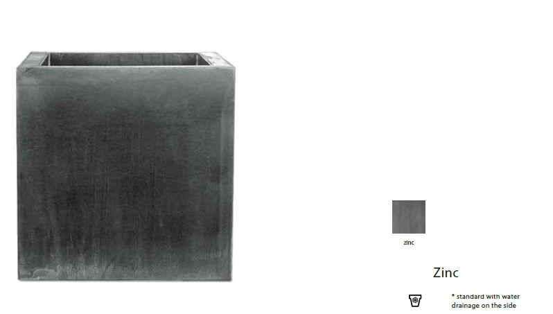 Le Pot Zinc Cube de chez Domani est un pot ultra contemporain capable de sublimer n’importe quel type d’aménagement extérieur. Le long d’une allée, au milieu du jardin ou sur une terrasse, ce pot saura donner une touche d’élégance et d’authenticité à une décoration outdoor. Ce pot, équipé d’une double paroi et d’un système d’évacuation d’eau intégré prend soin des végétaux qu’il accueille. Réalisé en zinc antigélif, le pot Zinc Cube est ultra résistant aux intempéries et aux contraintes extérieures. Décliné en 6 dimensions, il s’adapte à la taille du sujet à planter. Au contact de l’eau, de l’air et de l’humidité, le matériau zinc se patine dans le temps, ce qui confère au pot Zinc Cube un cachet esthétique incontournable. Il s’associe parfaite avec la Jardinière Zinc de la même collection.