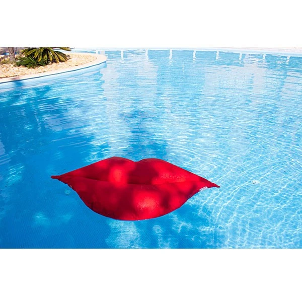 Les matériaux de haute qualité du pouf Bouche lui permettent de rester en extérieur au bord d’une piscine ou sur une terrasse.