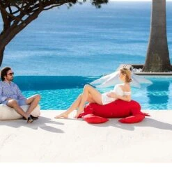 Les matériaux de haute qualité du pouf Crabe lui permettent de rester en extérieur au bord d’une piscine ou sur une terrasse.