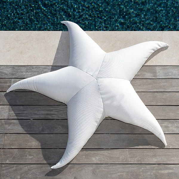 Les matériaux de haute qualité du pouf Etoile de Mer lui permettent de rester en extérieur au bord d’une piscine ou sur une terrasse.