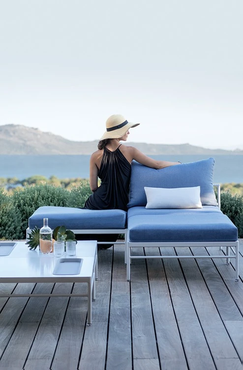 Cette collection repose sur un système modulable qui permet à chacun de concevoir le salon de jardin qui lui correspond. Une multitude de configurations se dessine.