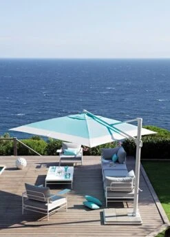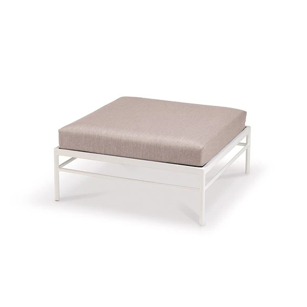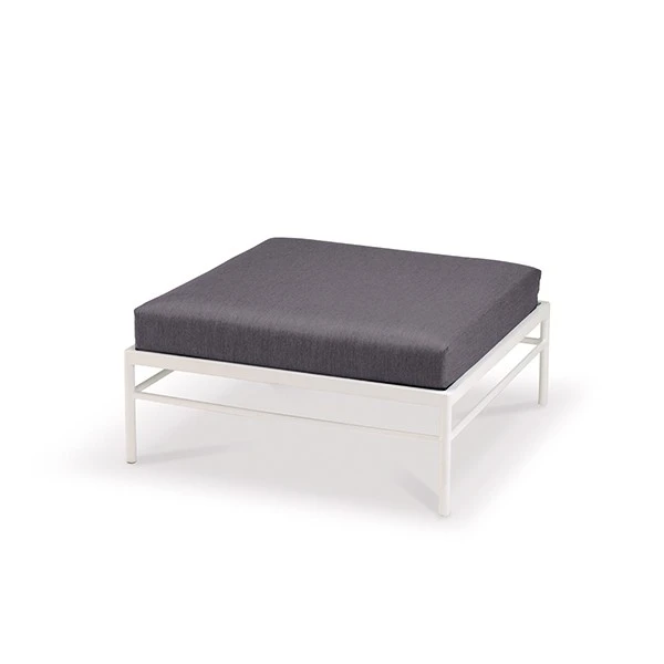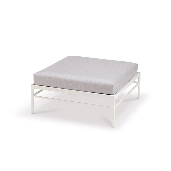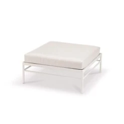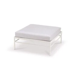 Ce pouf design invite au confort et à la discussion entre amis en extérieur. Rivage utilise des matériaux premium pour un maximum de résistance en outdoor, même en bord de mer. Réalisé en aluminium laqué blanc coton et en toile technique d’extérieur, ce pouf s’installe sans crainte sur une terrasse, en bord de piscine ou dans un jardin.