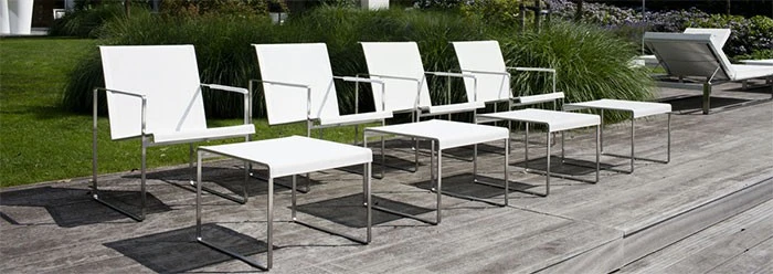 Le Repose-Pieds Cima de chez Fuera Dentro a été conçu par le designer Hendrik Steenbakkers. Ce repose-pieds fait partie de la collection Cima, une large gamme de mobilier design aux lignes pures, minimalistes et architecturales. Disponibles en plusieurs couleurs contemporaines, ces repose-pieds ont un look résolument moderne grâce à leur structure en inox brossé avec une finition électropolie de très grande qualité, et leur tissu Batyline®. Le mobilier offre le meilleur pour accueillir famille et amis tout au long de l’année que ce soit en intérieur ou en extérieur.