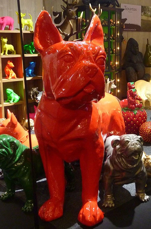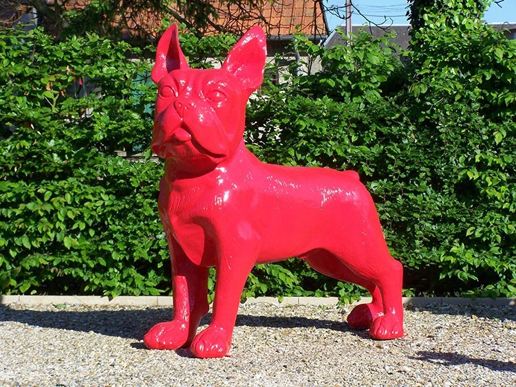 La Statue Bulldog Français taille XXL Laqué rouge de TexArtes est un objet hyper contemporain. Cette statue d’animal aux dimensions incroyables permet d’aménager un espace extérieur ou intérieur de façon unique dans un esprit Arty. Réalisée en un mélange de résine artificielle et de polyester, cette statue est entièrement réalisée et peinte à la main de façon artisanale. Recouverte d’une peinture laquée rouge (RAL 3020), cette statue assure une décoration hors du commun à votre espace. D’autres couleurs RAL, couleurs métallisées et couleurs fluos sont disponibles sur demande, nous contacter.
