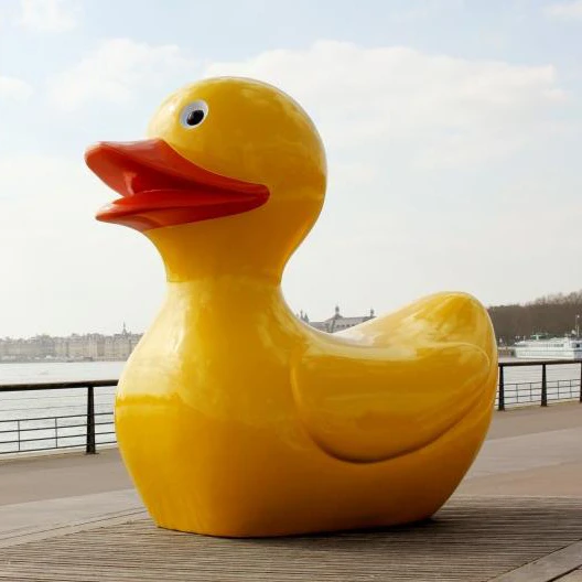 La Statue Canard Géant Laqué de chez TexArtes est un objet déco XXL unique et contemporain. Cette statue contemporaine à la taille incroyable permet d’aménager un espace extérieur de façon unique dans un esprit Arty. Réalisée en un mélange de résine artificielle et de polyester laqué couleur jaune, cette statue est entièrement réalisée et peinte à la main de façon artisanale. Déclinée en 2 tailles géantes, cette statue d’extérieur revisite le canard de bain avec design et assure une décoration hors du commun à jardin, un parc ou une place publique.