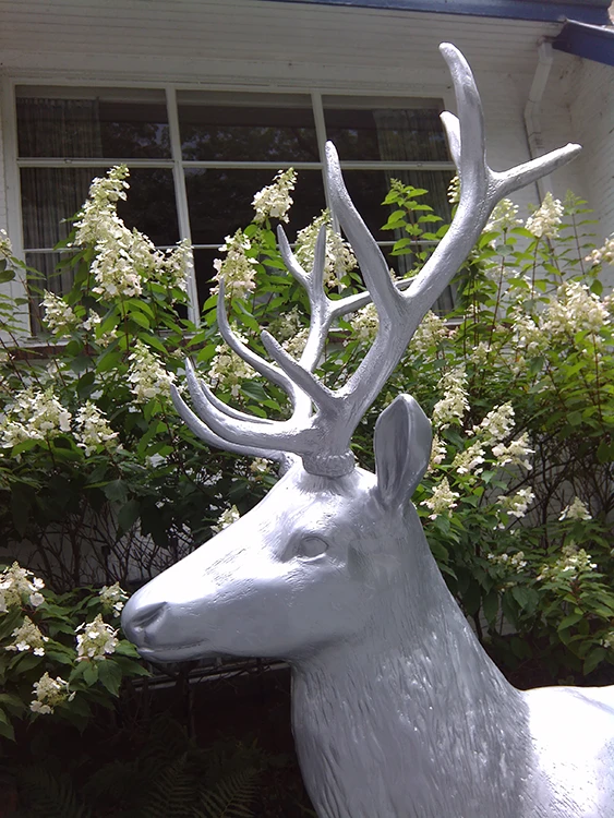 La Statue Cerf Laqué Métallisé de chez TexArtes est un objet inédit et contemporain. Cette statue de cerf taille réelle permet d’aménager un espace extérieur ou intérieur de façon unique dans un esprit Arty. Réalisée en un mélange de résine artificielle et de polyester, cette statue de cerf majestueux est entièrement réalisée et peinte à la main de façon artisanale. Avec sa robe couleur argent laqué métallisé ou or laqué métallisé, cette statue design apporte une touche de déco sophistiquée et précieuse à un espace.