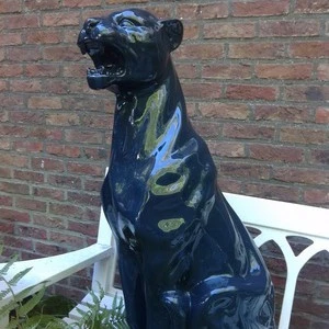 Statue Panthère Assise Bleu Gris Laqué – Tex Artes