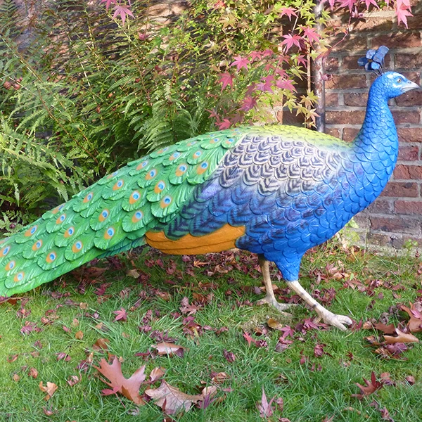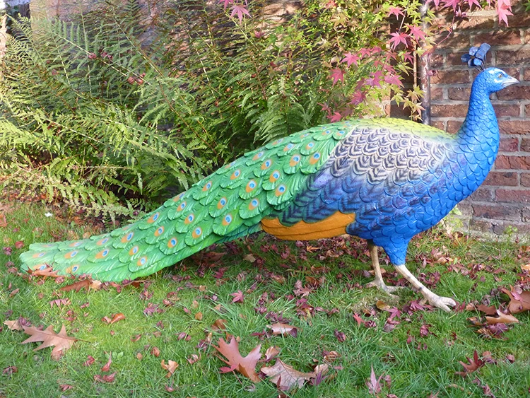 La Statue Paon de chez Tex Artes est un élément de décoration unique et contemporain. Cette statue grandeur nature est fabriquée en un mélange de résine artificielle et de polyester, entièrement réalisée à la main et peinte de façon artisanale. Frappant de ressemblance, ce paon apportera une atmosphère toute particulière à votre extérieur! Installée dans votre jardin, sur votre pelouse, derrière un feuillage, cette statue de paon taille réelle étonnera par son authenticité et son réalisme. De quoi décorer son espace avec originalité!
