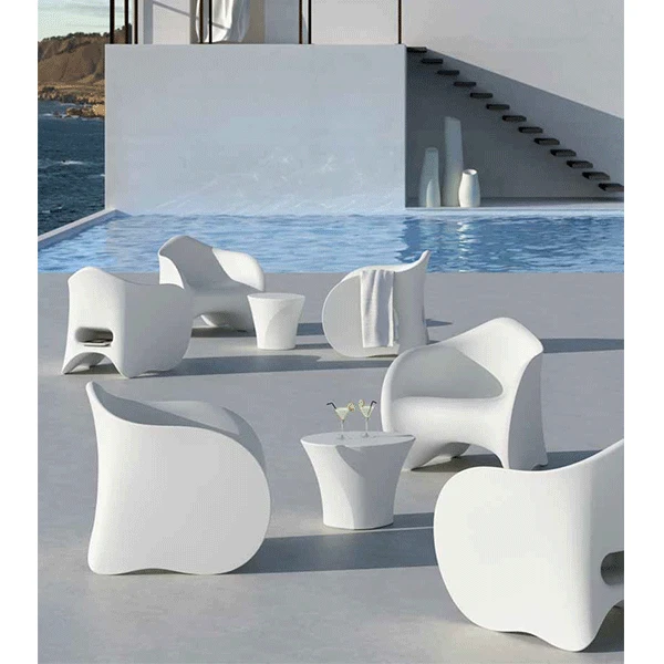 La Table Basse Enta dessinée par Setsu & Shinobu Ito pour Plust est une petite table basse d’extérieur au look ultra contemporain. Réalisée en polyéthylène hautement résistant décliné en finition mate, laquée et métalisée et en différents coloris, cette table basse s’associe idéalement avec le Fauteuil Goen des mêmes designers pour créer un ensemble salon de jardin résolument moderne et graphique.