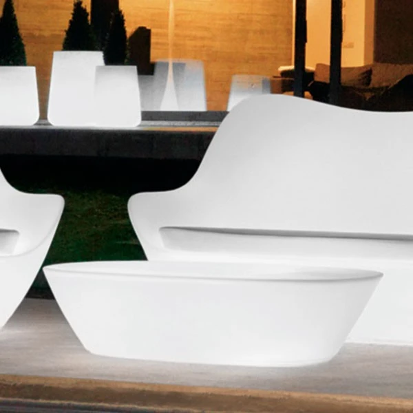 La Table Basse Lumineuse Sabinas de chez Vondom est une rencontre entre élégance et design. Imaginée par Javier Mariscal, cette table basse aux formes fluides fait allusion à des dunes de sable. Une création qui renvoie générosité et convivialité et qui, bien évidemment offre un très grand confort. Cette table 100% recyclable est d’une qualité inégalable grâce à sa matière en polyéthylène rotomoulé qui lui confère une haute résistance aux intempéries, aux UV et aux températures extrêmes. La Table Basse Lumineuse Sabinas donnera une touche de modernisme aussi bien à vos espaces intérieurs qu’extérieurs, tout en les illuminant. Sur une terrasse, autour d’une piscine ou bien dans un salon, elle embellira avec style votre décoration et vous permettra de partager avec vos proches à n’importe quel moment!