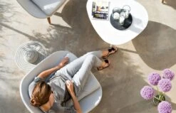 La Table Basse Vanity de chez Vlaemynck est une jolie table basse aux lignes modernes et sobres. Le look de la collection Vanity s’inspire de l’élégance des fifties. Cette table basse avec son plateau aluminium en forme de galet et ses 3 pieds en aluminium laqué est parfaite pour compléter un salon de jardin Vanity. Déclinée en blanc ou en anthracite, elle s’associe parfaitement avec le Fauteuil Bas Vanity, le Sofa 2 Places Vanity et le Tabouret Bas Vanity.