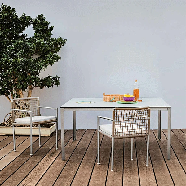 La Table Carrée Shot de chez Coro est une table de repas dessinée par le designer italien Stefano Gallizioli. Les plateaux disponibles en stratifié (blanc, noir et taupe), en polyuréthane (blanc, noir et taupe) et en pierre (pierre noire du Zimbabwe, quartz blanc et quartz anthracite) sont associés à une structure en acier inoxydable satiné, cette table est spécialement conçue pour une utilisation en extérieur tout au long de l’année. Avec un design unique et ultra chic, elle est idéale pour créer un espace de repas moderne et contemporain dans un lieu aussi bien privé que public. Vous pourrez l’associer avec la Chaise S01 et et la Chaise avec Accoudoirs SB01. Découvrez également la Table Rectangulaire Shot en polyuréthane, stratifié et pierre.