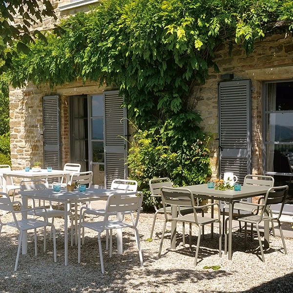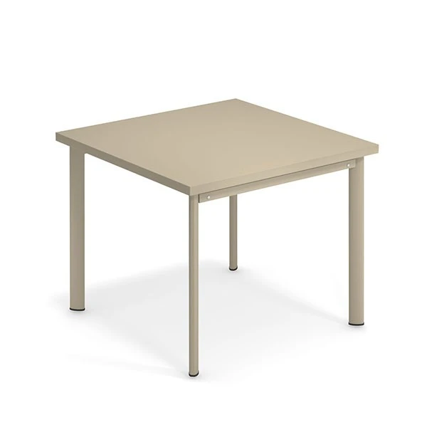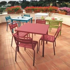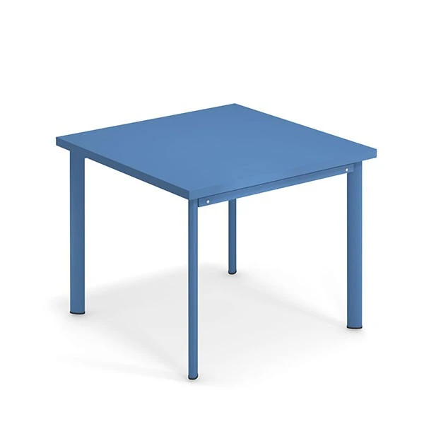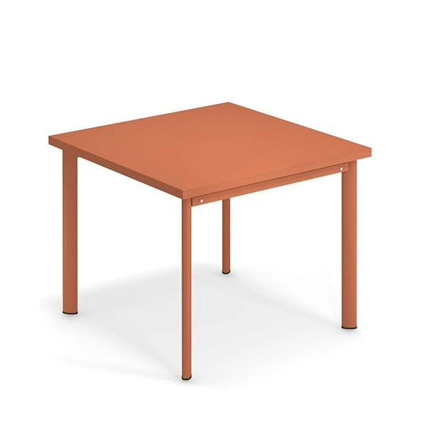 La Table Carrée Star 90cm de chez Emu est l’expression de la simplicité et du design contemporain. Sa structure en acier verni et son piètement tubulaire métallique lui confèrent une haute résistance aux contraintes extérieures. Avec sa palette de 16 coloris tendances, cette table de repas aménage un espace repas outdoor avec élégance et sobriété. La Table Carrée Star s’associe idéalement avec les Chaises Star et les Chaises Star avec Accoudoirs pour aménager avec modernité et sobriété votre espace repas extérieur.