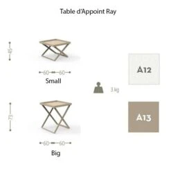 La Table d’Appoint Ray de chez Talenti est une table de service entièrement réalisée en aluminium peint 2 coloris, blanc ou tourterelle. Ce mobilier est ultra pratique et fonctionnel, à placer au bord de vos transats, dans votre espace repas ou salon de jardin. La Table d’Appoint Ray est disponible en 2 hauteurs pour s’adapter à chaque besoin. Son plateau est amovible et permet de faire le service en toute facilité.
