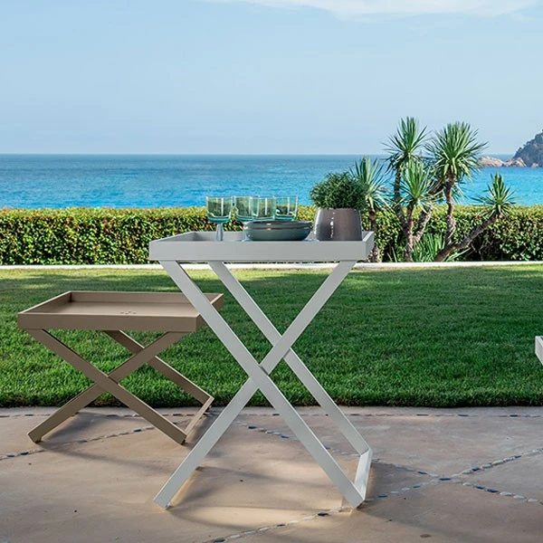 La Table d’Appoint Ray de chez Talenti est une table de service entièrement réalisée en aluminium peint 2 coloris, blanc ou tourterelle. Ce mobilier est ultra pratique et fonctionnel, à placer au bord de vos transats, dans votre espace repas ou salon de jardin. La Table d’Appoint Ray est disponible en 2 hauteurs pour s’adapter à chaque besoin. Son plateau est amovible et permet de faire le service en toute facilité.