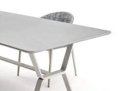 La Table de Repas Deer de chez Varaschin s’identifie par ses lignes épurées. Imaginée par Anki Gneib, cette table de repas se décline en 3 finitions de structure et 2 types de plateaux (HPL ou Ciment). Des matériaux qui lui garantissent une résistance aux UV et aux intempéries. Il est conseillé d’abriter la table en cas de conditions météorologiques très défavorables. La table Deer n’est d’ailleurs pas adaptée à un usage en milieu marin, front de mer (un traitement spécial est envisageable avec surcoût selon quantités, nous contacter). La Table De Repas Deer apportera une touche contemporaine à un espace extérieur. De quoi aménager un espace repas outdoor moderne et fonctionnel. Avec sa longueur de 200cm, elle pourra accueillir vos convives pour de délicieux repas conviviaux en plein air. Elle s’associe parfaitement bien avec la Chaise Clever de la gamme Varaschin.