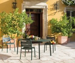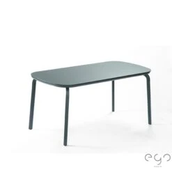Avec sa structure en aluminium thermo-laqué avec laque semi-gloss (brillante lisse) ou texturée et son plateau en aluminium texturé, teck ou céramique, cette table de repas arbore un look à la fois simple et contemporain.