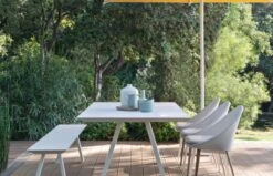 Elle s’accompagne idéalement de la Chaise Vanity et/ou du Banc Vanity pour créer un ensemble repas harmonieux et confortable.