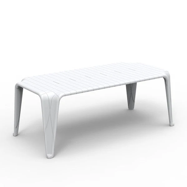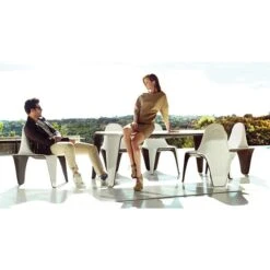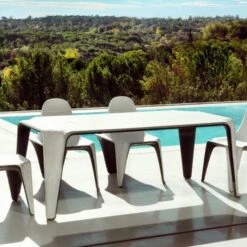 La Table F3 de chez Vondom s’identifie par sa forme géométrique et graphique qui apporte à tout outdoor, un design hors du commun. Imaginée par le designer Fabio Novembre, cette table de repas fait partie d’une collection basée sur des courbes jamais vu auparavant. Une invention aux lignes rondes et précises, qui invite à partager des moments à plusieurs! Cette table 100% recyclable est d’une qualité inégalable grâce à sa matière en polyéthylène rotomoulé qui lui confère une haute résistance aux intempéries, aux UV et aux températures extrêmes. Déclinée en 14 coloris tendances, la Table F3 donnera une touche contemporaine aussi bien à vos espaces intérieurs qu’extérieurs. Installée dans un salon, au bord d’une piscine ou sur une terrasse, elle saura apporter dynamisme et modernité.