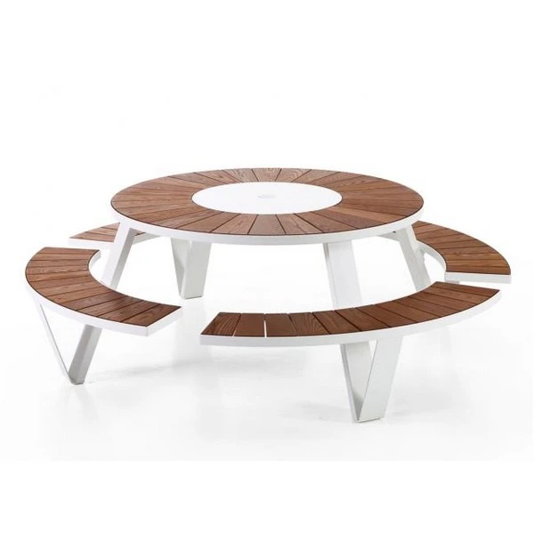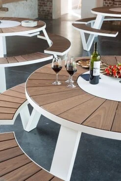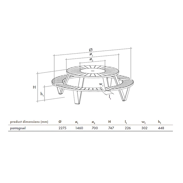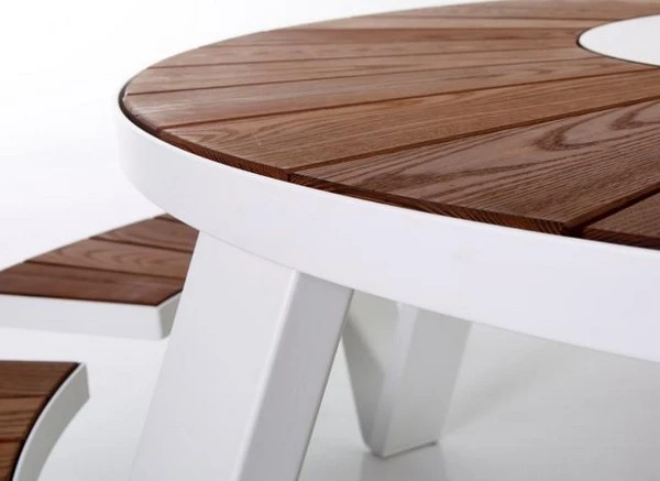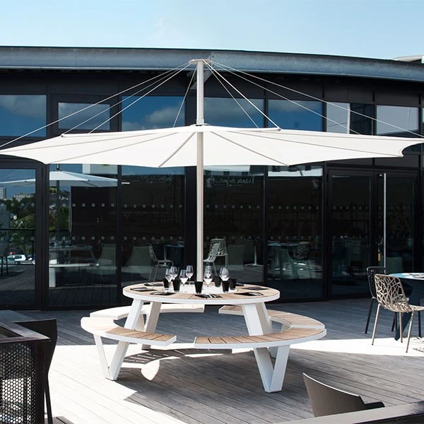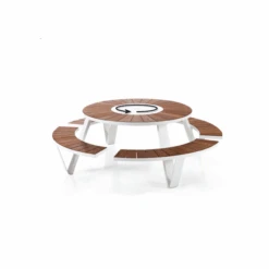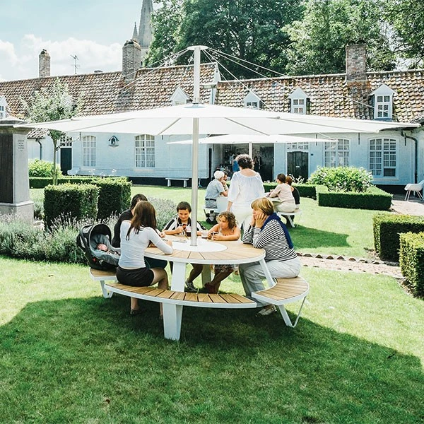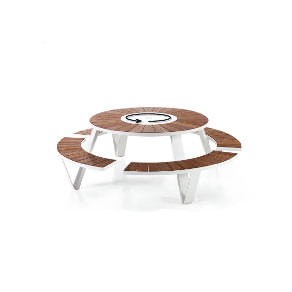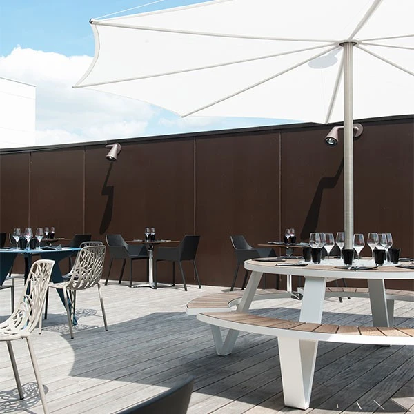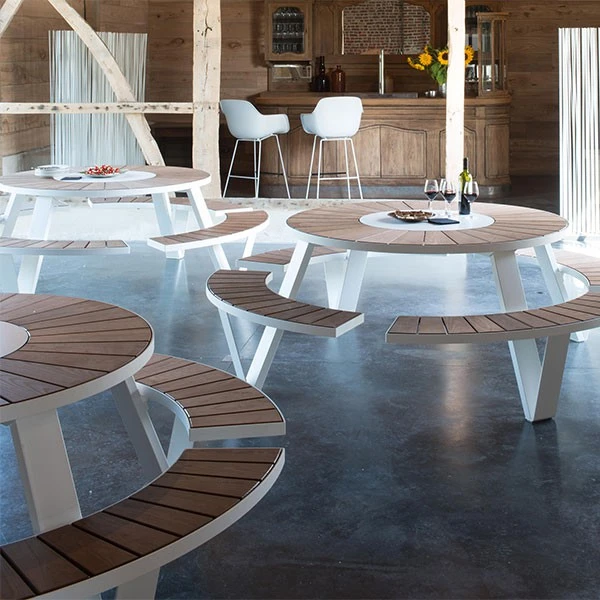 La Table Pantagruel de la marque Extremis est designée par Dirk Wynants, dessinateur et fondateur de la marque. Cette table est une version haut de gamme et design de la traditionnelle table de pique-nique. Utilisant des matériaux nobles tels que le bois ou le métal blanc, cette table invite à des moments conviviaux en extérieur. Seconde version de la désormais célèbre table Gargantua, elle est pourvue d’un plateau central en HPL blanc qui pivote afin de faciliter les repas. Avec sa structure en acier galvanisé, cette table résistera à toutes contraintes extérieures et trouvera forcément sa place dans votre espace extérieur ! Adaptée pour une utilisation publique comme privée, cette table saura combler vos attentes!