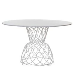La Table Re-Trouvé est une table repas d’extérieur design en métal qui évoque un design classique réintreprété avec beaucoup d’ironie.