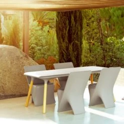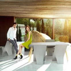 La Table Sloo Piétement Iroko de chez Vondom se définit par son look design mais simple. Imaginée par le designer Karim Rashid, cette table fait partie d’une collection basée sur des formes épurées. Une création au look élégant, offrant un style complètement pur et ergonomique.Cette table 100% recyclable est d’une qualité inégalable grâce à sa matière en polyéthylène rotomoulé qui lui confère une haute résistance aux intempéries, aux UV et aux températures extrêmes. Déclinée en 2 dimensions et en 14 coloris tendances de plateau polyéthylène, la Table Piétement Iroko Sloo procurera un charme divin aussi bien à vos espaces intérieurs qu’extérieurs. Son piétement en bois Ikoro lui confère un look design et plus naturel. Installée dans un salon, au bord d’une piscine ou sur une terrasse, elle agrémentera chaque endroit sur son passage.