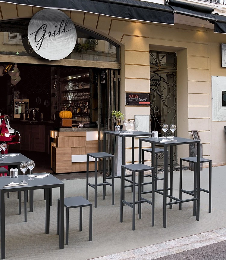 Ce tabouret haut s’associe idéalement avec la Table Mange-Debout Quadrix pour former un ensemble haut moderne et élégant en extérieur. Aussi bien sur une terrasse privée que de restaurant ou de café.