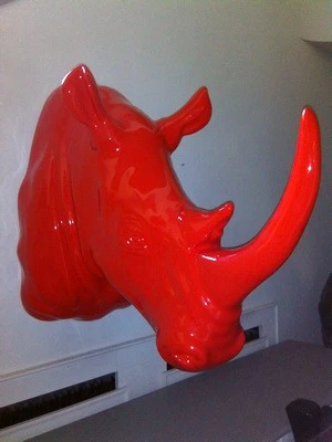 Tête De Rhinoceros Rouge Laqué – Tex Artes